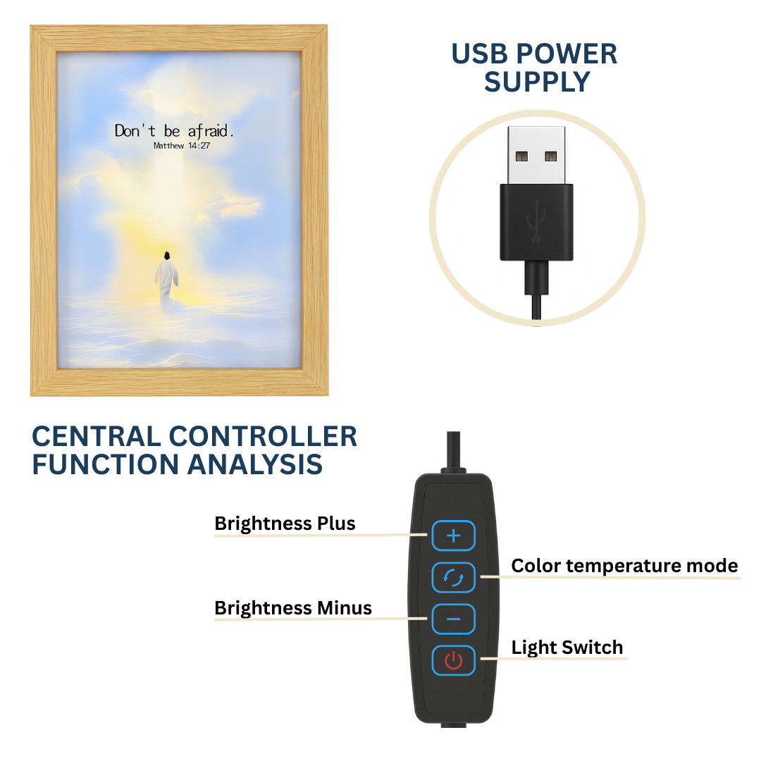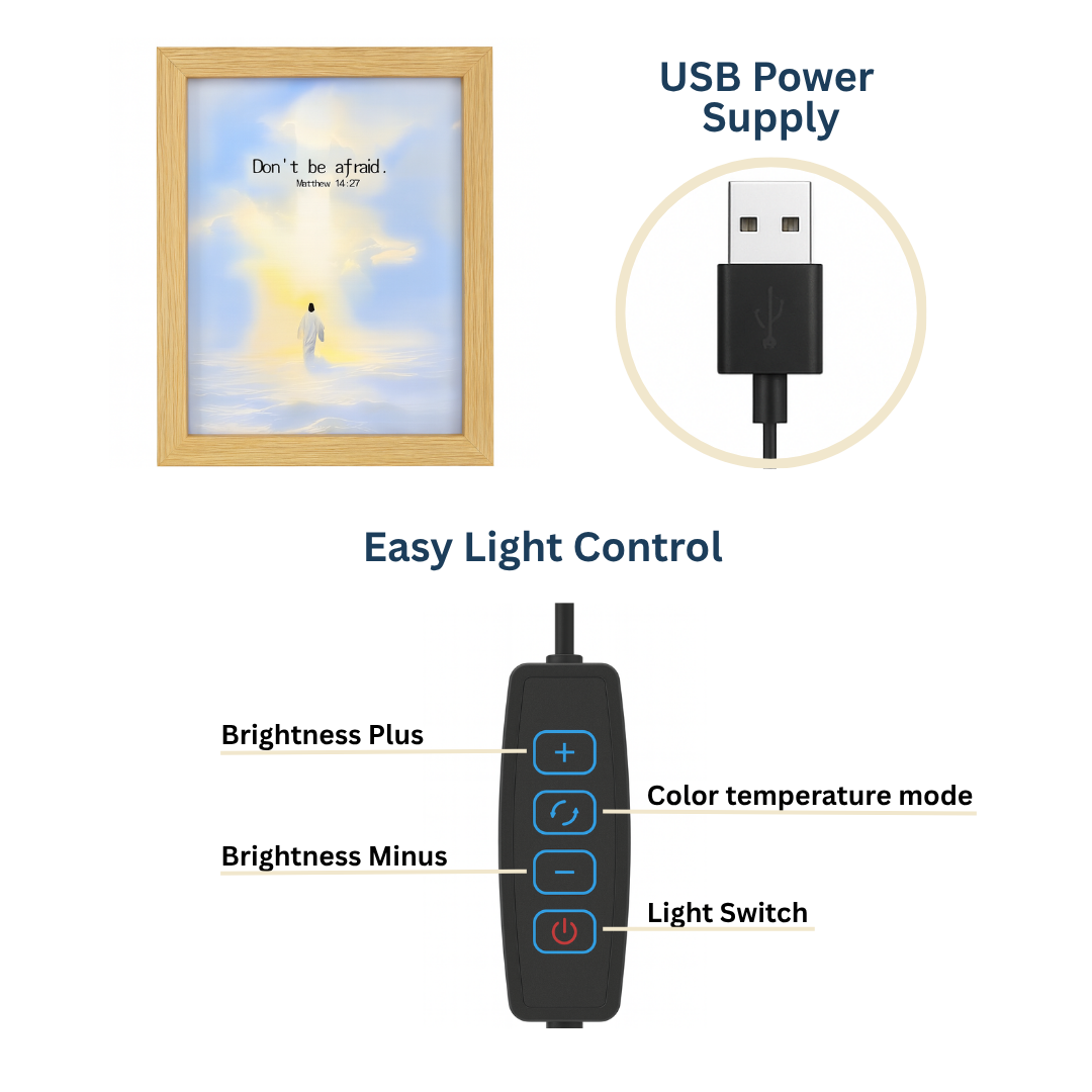 This frame is even more beautiful in person. The glow is so peaceful β it brings such a calm feeling to my room. The verse reminds me every day that Jesus is with me. I already ordered another one for my sister.